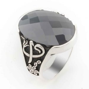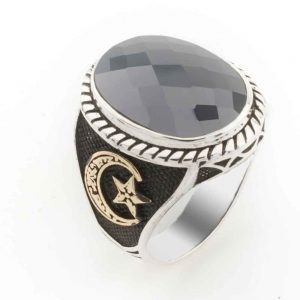 925 Sterling Silver Ring for Men with Black Zircon Stone and Moon Design