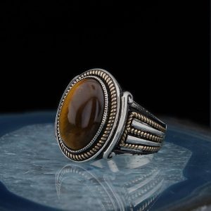 Tiger Eye Stone is among the most preferred stones in men’s silver rings. They distinguish themselves from other stones with their unique colors and patterns. Another feature of the Tiger Eye Stone is that it has a different pattern in each stone. You can find the most beautiful Tiger Eye ring designs at Ortak Silver.