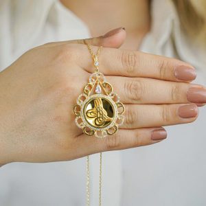 925 Sterling Silver Gold Plated Women Necklace with Ottoman Sign and Drop Shaped Design