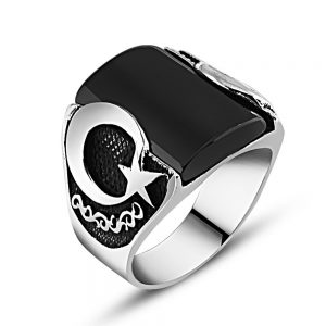 925 Sterling Silver Ring for Men with Black Onyx Stone and Anchor Design