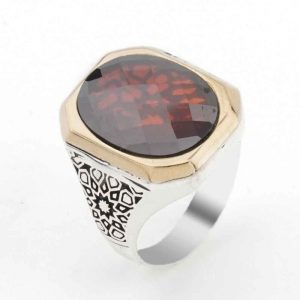 925 Sterling Silver Ring for Men with Flat Agate Stone