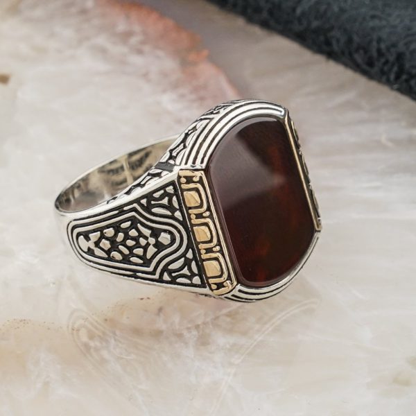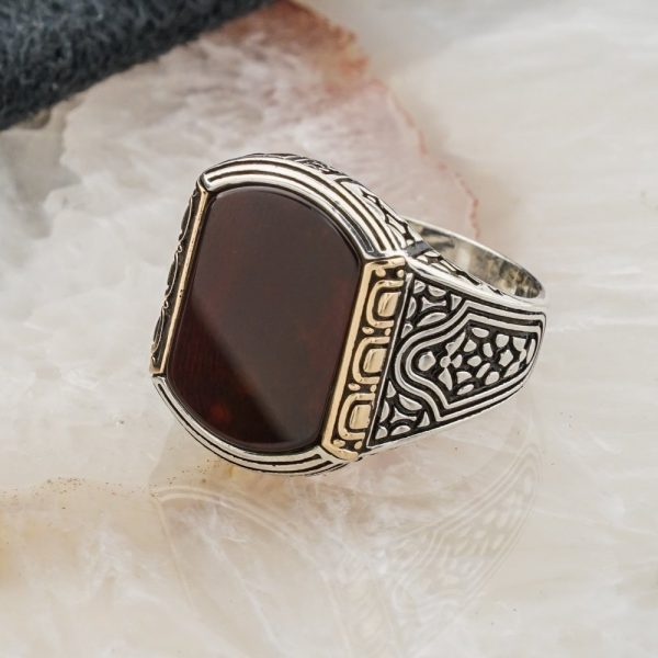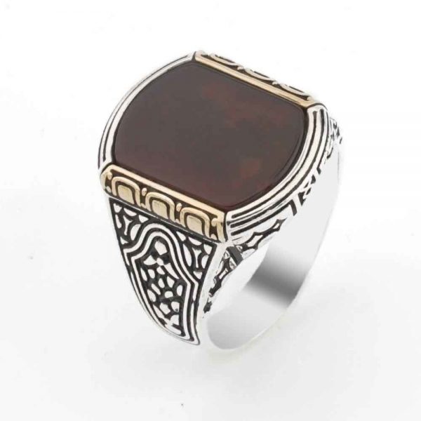 925 Sterling Silver Ring for Men with Flat Agate Stone