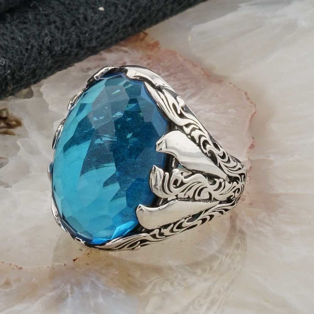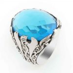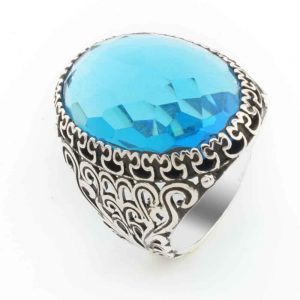 925 Sterling Silver Ring for Men with Light Blue Zircon Stone