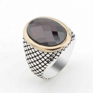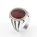 925 Sterling Silver Ring for Men with Red Zircon Stone