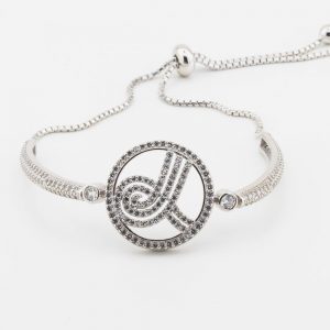 925 Sterling Silver Bracelet with Zircon Stone, Ottoman Sign and Lift System