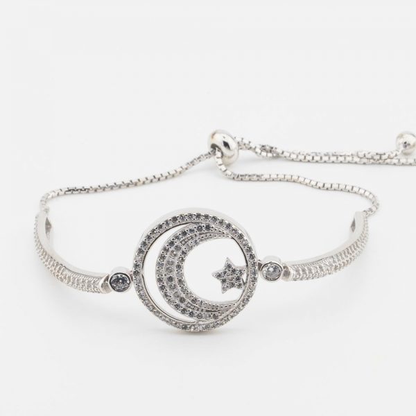 Moon Star Design 925 Sterling Silver Bracelet with Zircon Stone and Lift System
