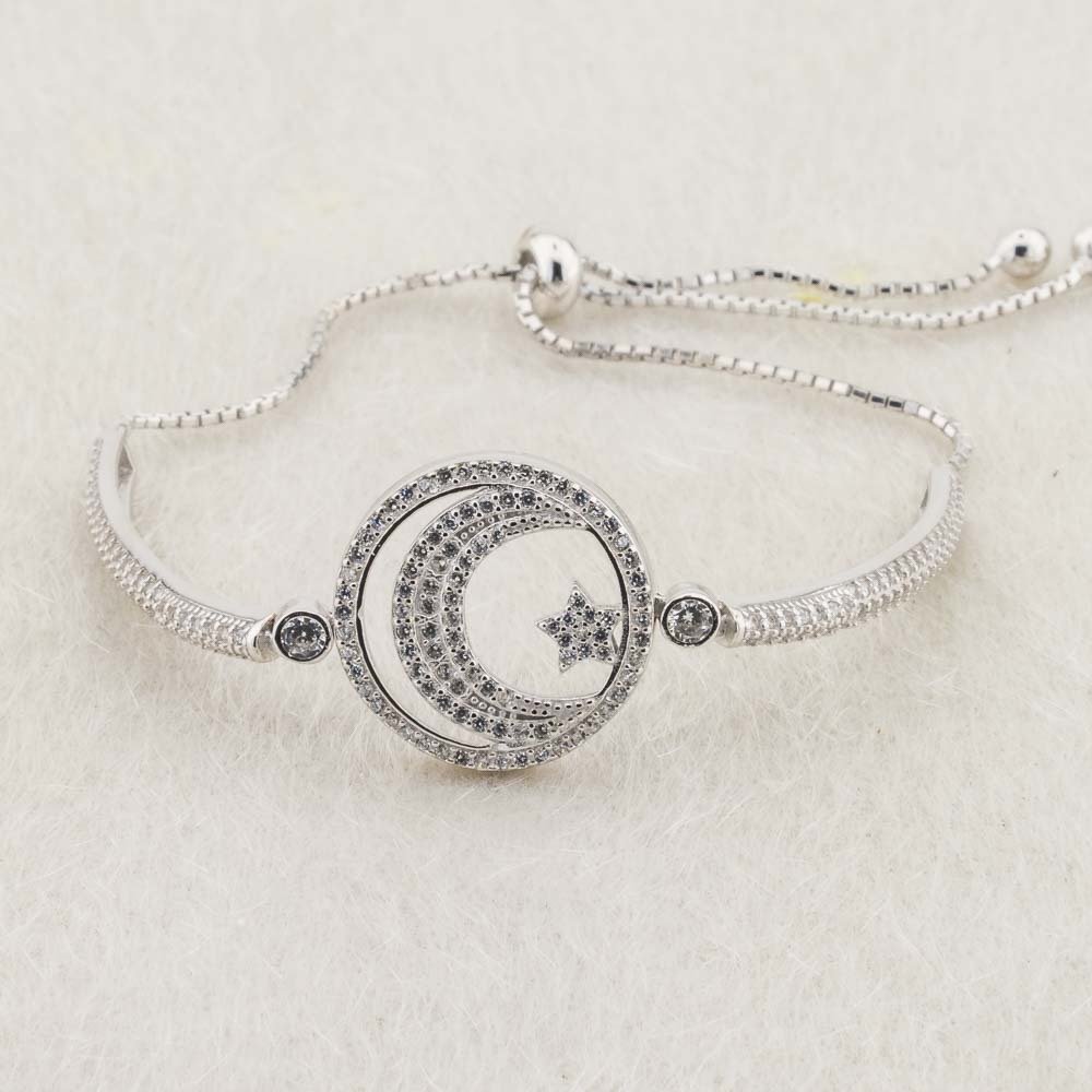 -28%Moon Star Design 925 Sterling Silver Bracelet with Zircon Stone and Lift System