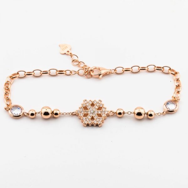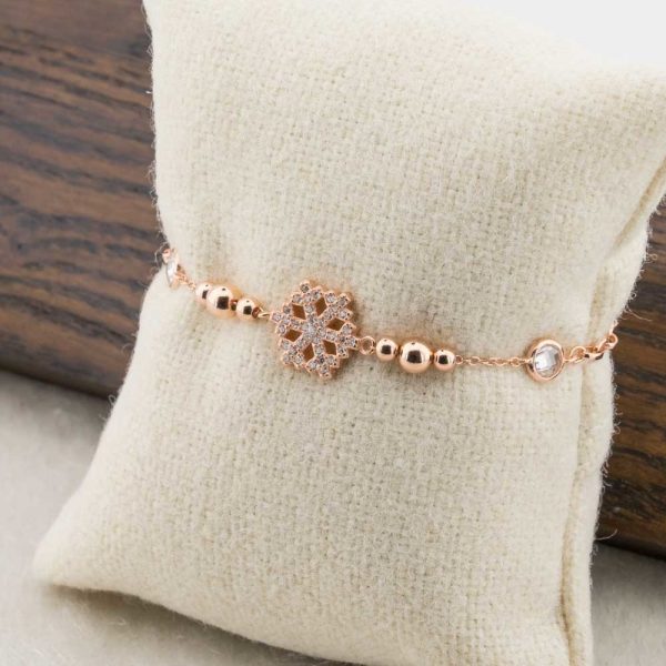 -40%Rose Gold 925 Sterling Silver Bracelet with Zircon Stone and Snowflake Design