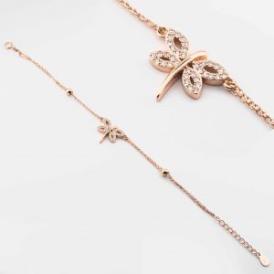 Rose Gold 925 Sterling Silver Bracelet with Zircon Stone and Dragonfly Design