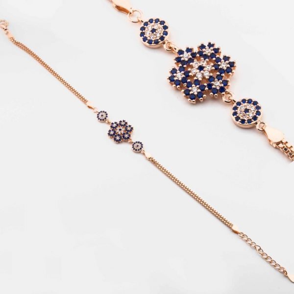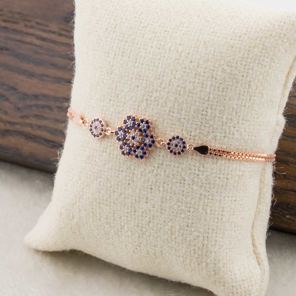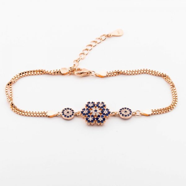 Snowflake Design 925 Sterling Silver Bracelet with Blue Stone and Evil Eye