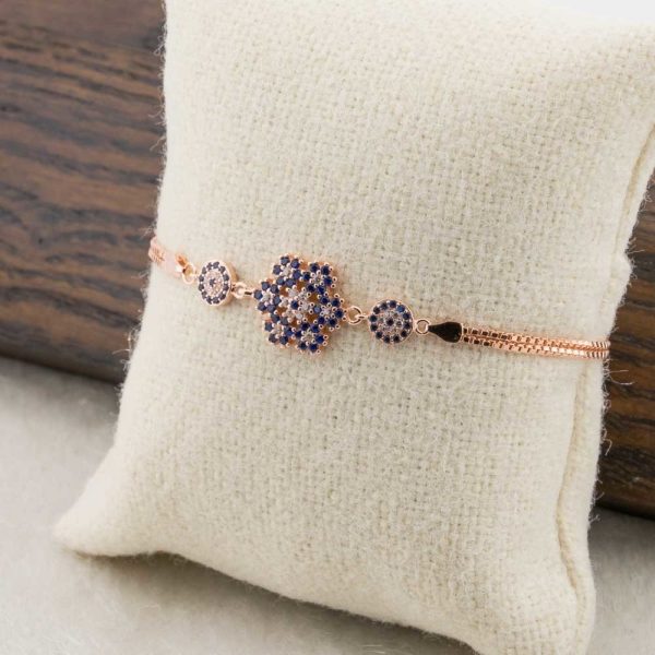 -39%Snowflake Design 925 Sterling Silver Bracelet with Blue Stone and Evil Eye